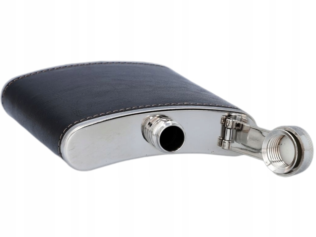 Stylowe wykończenie – piersiówka obszyta elegancką sztuczną skórą, która nadaje jej wyjątkowy, klasyczny wygląd.