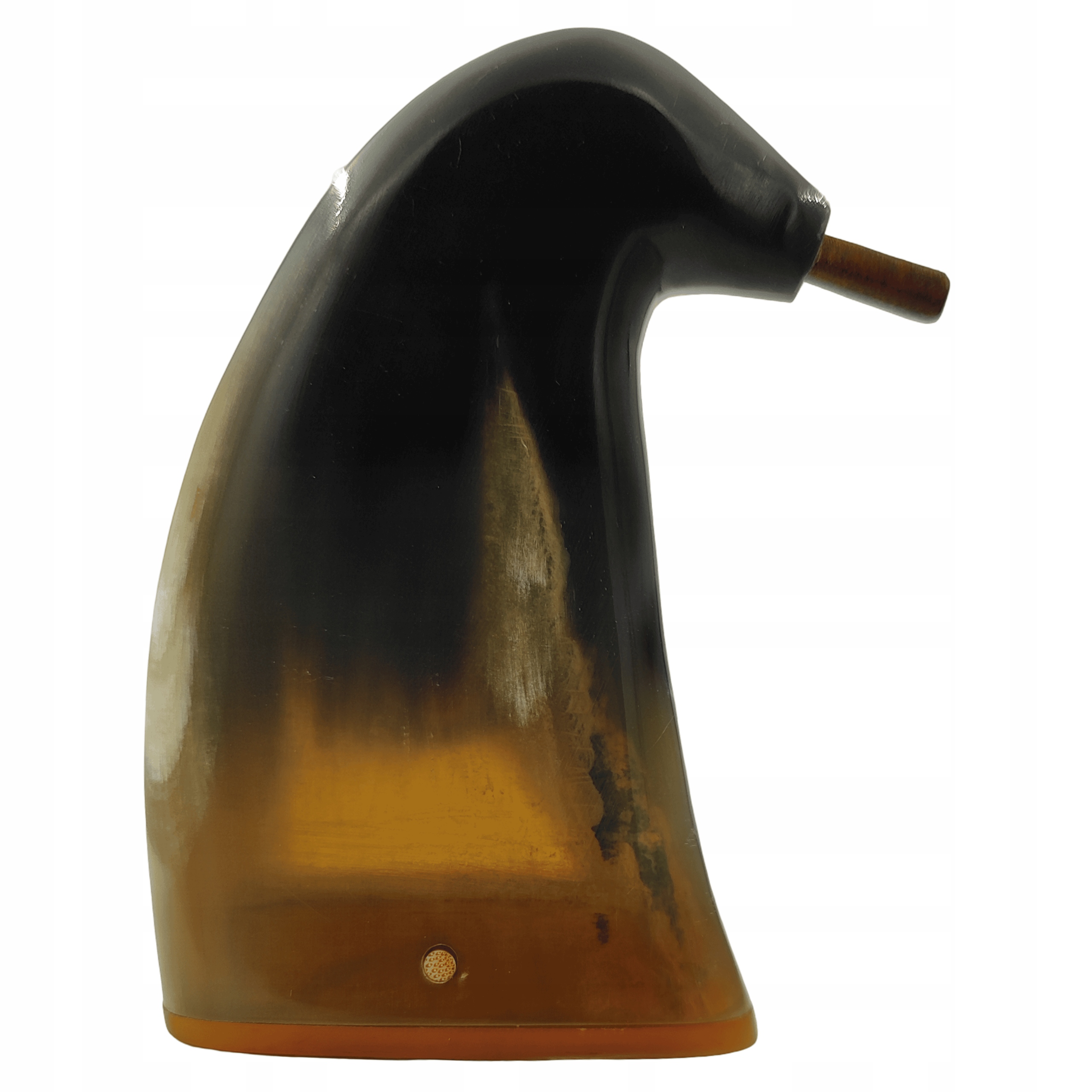 Wyjątkowa tabakiera wykonana przez mistrza rogu na Kaszubach. Jej przód zdobi gryf z mosiądzu.