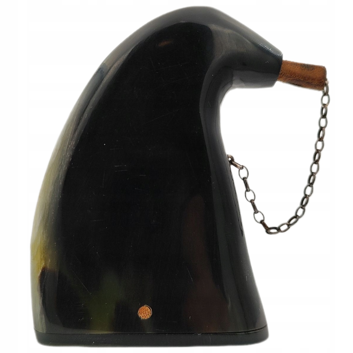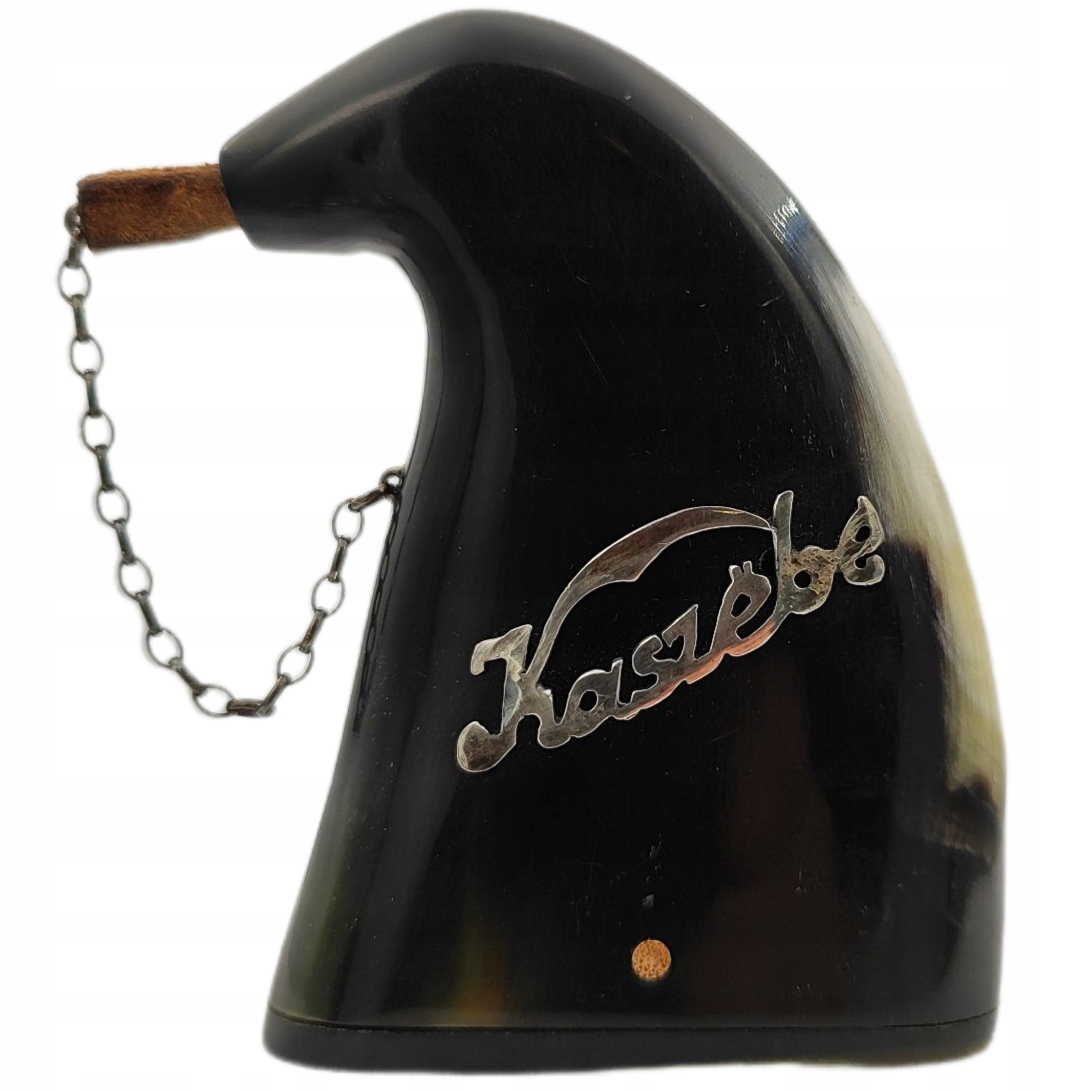 TABAKIERA KASZUBSKA Z ROGU Z ŁAŃCUSZKIEM I EMBLEMATEM KASZEBE NA TABAKĘ