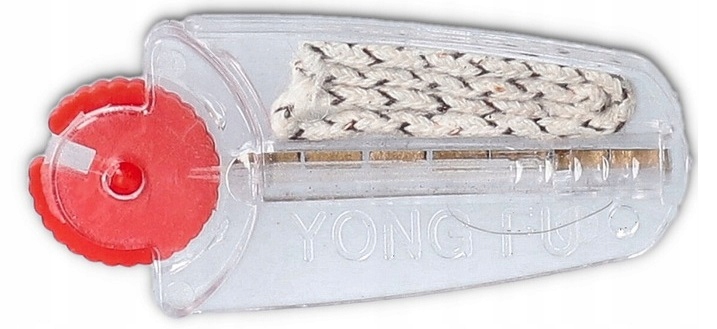 Zestaw w postaci knota oraz ośmiu kamieni do zapalniczki benzynowej w wygodnym podajniku.